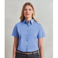 Soft collar styling, rounded bottom hem. Fitted styling with bust darts and back darts. Easycare fabric. Pearlised buttons on light blue and white. Self coloured buttons on remaining colours. Size 6, 8, 10, 12, 14, 16, 18, 20, 22, 24, 26 * size 6 only avaialble in these colours