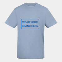 Relaxed fit T. Short sleeves. Side seams. PurePrint BC Cotton fabric. Taped back neck. Twin needle stitch details. Ribbed crew neck.