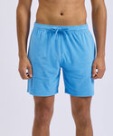 Soft hand feel. Towelling fabric. Patch pocket at rear. Forward-facing swing pockets. Elasticated waistband with drawcord. Twin-needle stitching on hem. Contains 20% certified recycled polyester.
